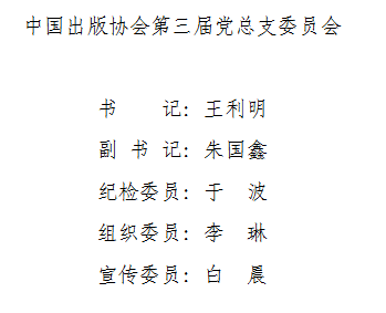 为切实加强中国出版协会党组织建设,充分发挥基层党组织战斗堡垒作用,2024年1月17日,中国出版协会党总支召开第三届党员大会,对党总支委员会进行换届改选。大会圆满完成各项议程,选举产生了新一届党总支委员会委员。