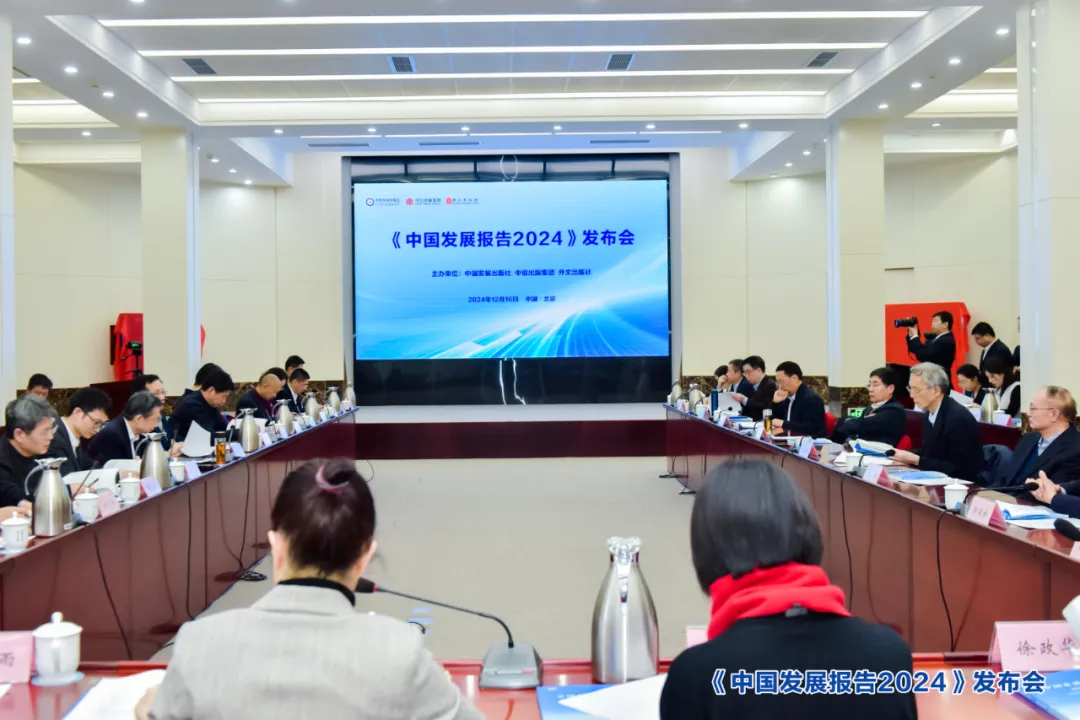 《中国发展报告2024》发布会现场12月16日,由国务院发展研究中心编写的《中国发展报告2024》在北京正式出版发行。国务院发展研究中心副主任、党组成员隆国强作主旨发言。十三届全国政协经济委员会副主任、国务院发展研究中心原副主任刘世锦;十四届全国政协委员、提案委员会副主任,中国发展研究基金会理事长,国务院发展研究中心原副主任张军扩;中国社会科学院学部委员、原副院长高培勇;中国出版协会理事长邬书林;中国国际经济交流中心总经济师陈文玲等知名专家围绕刚刚闭幕的中央经济工作会议精神以及中国高质量发展进行深入研讨。剑桥大学发展研究中心创始主任、剑桥大学崇华中国发展荣休讲席教授彼得·诺兰,波士顿大学全球发展政策中心主任凯文·加拉格尔,东盟与中日韩(10+3)宏观经济研究办公室(AMRO)首席经济学家许和意在研讨环节作视频发言。十四届全国政协委员、经济委员会委员,国务院发展研究中心原副主任余斌出席会议。中宣部、外交部等12个部委和国际货币基金组织、联合国开发计划署、联合国工业发展组织等国际组织以及多家跨国公司代表出席发布会。