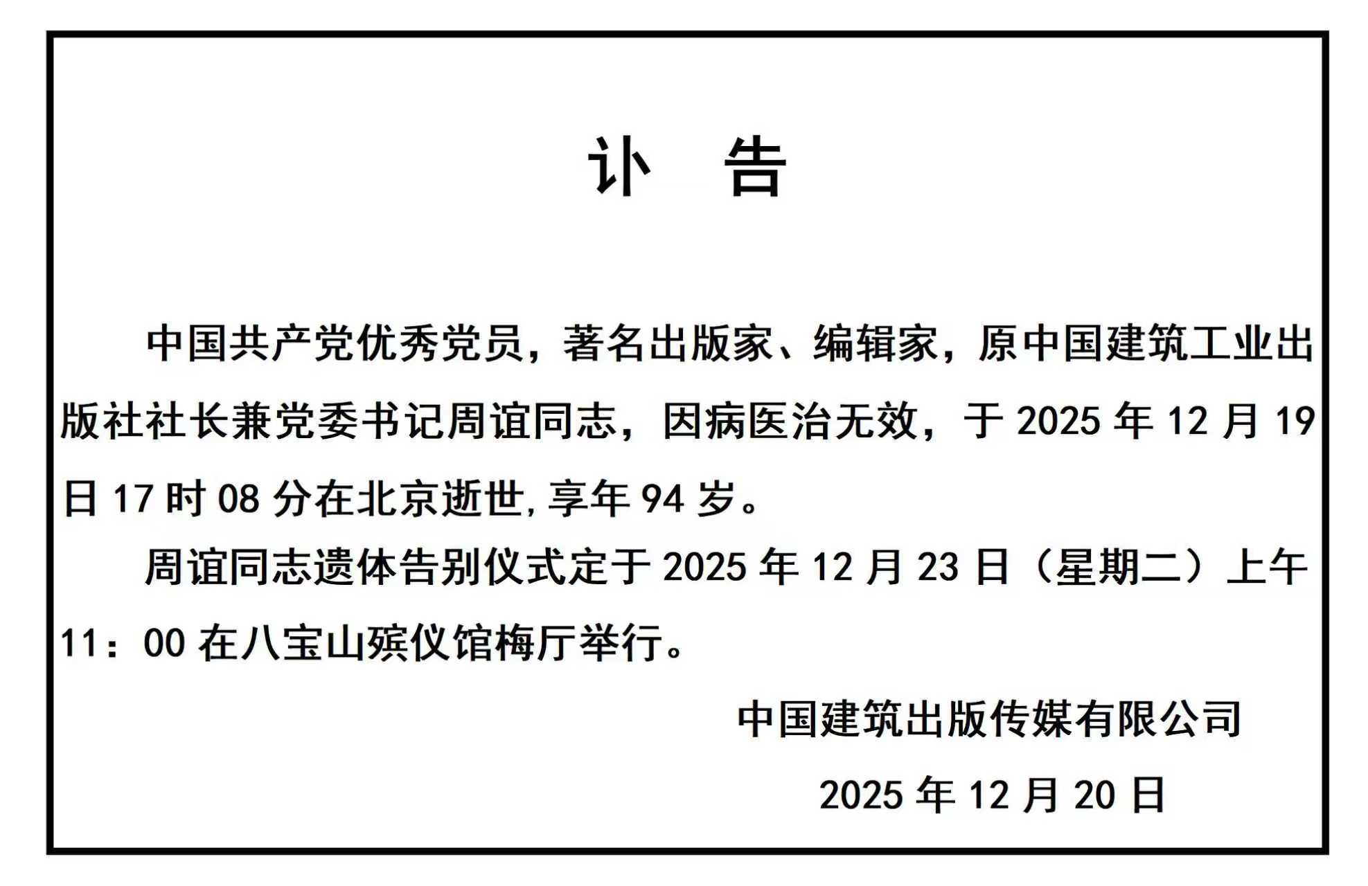 谨以此文,沉痛悼念并深切缅怀周谊同志。